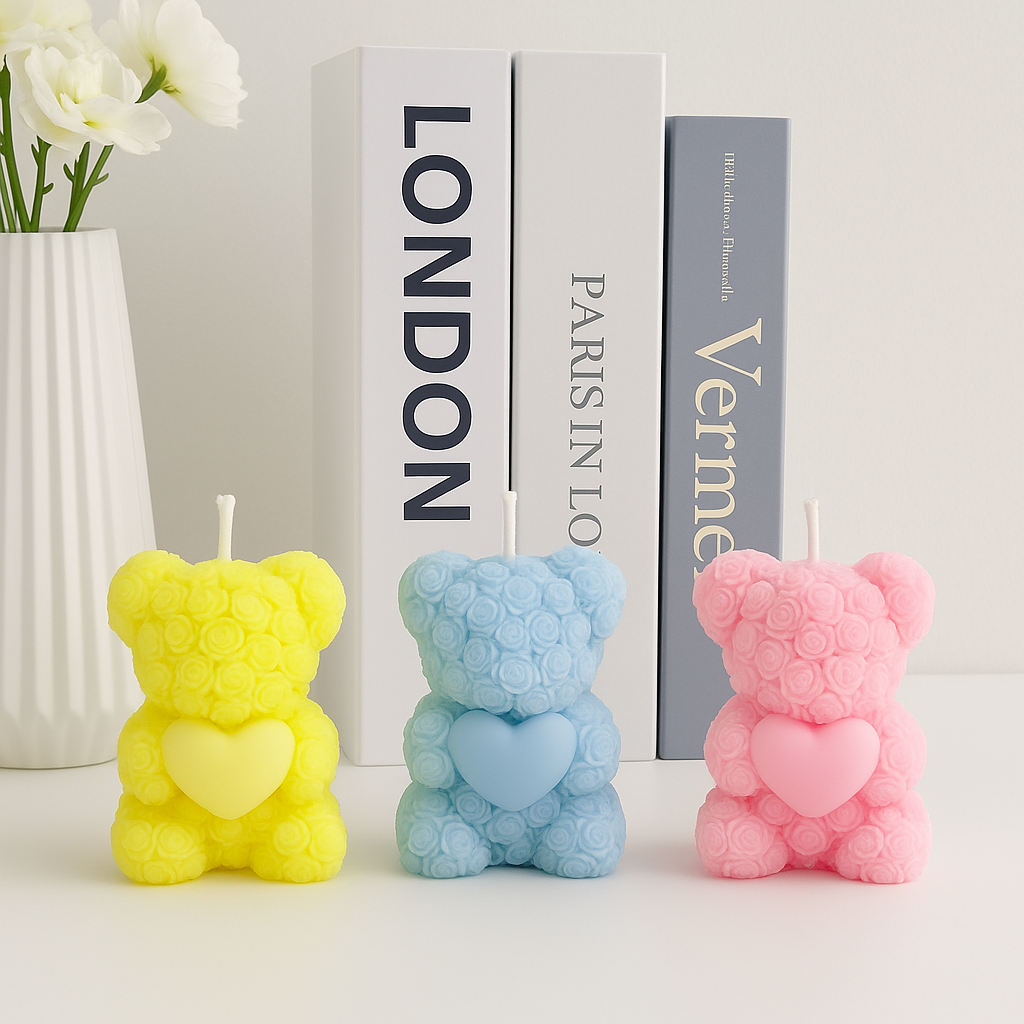 Soulsia Fragrance Candles combine delightful scents with charming teddy bear designs, making them perfect decorative accents for children's birthday celebrations. Crafted to enhance the ambiance, these candles offer a safe and attractive way to add warmth and joy to any party setting. Ideal for creating memorable moments, they blend aesthetic appeal with gentle fragrance suitable for kids' environments.